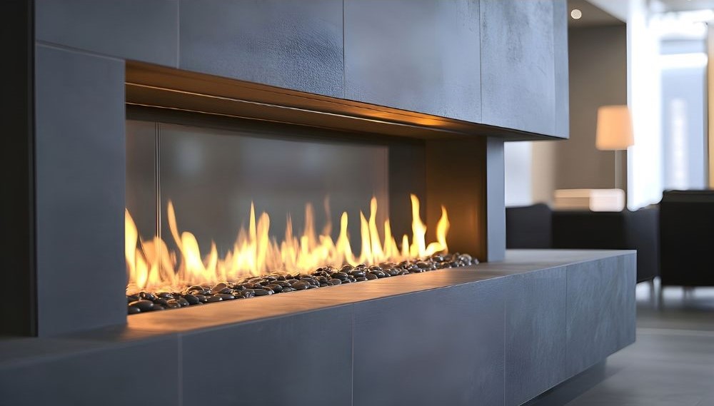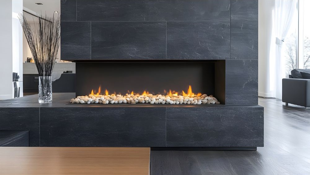 - Fiamma realistica e design elegante – i moderni camini a gas presentano ceppi ceramici o pietre decorative che creano un aspetto naturale della fiamma.