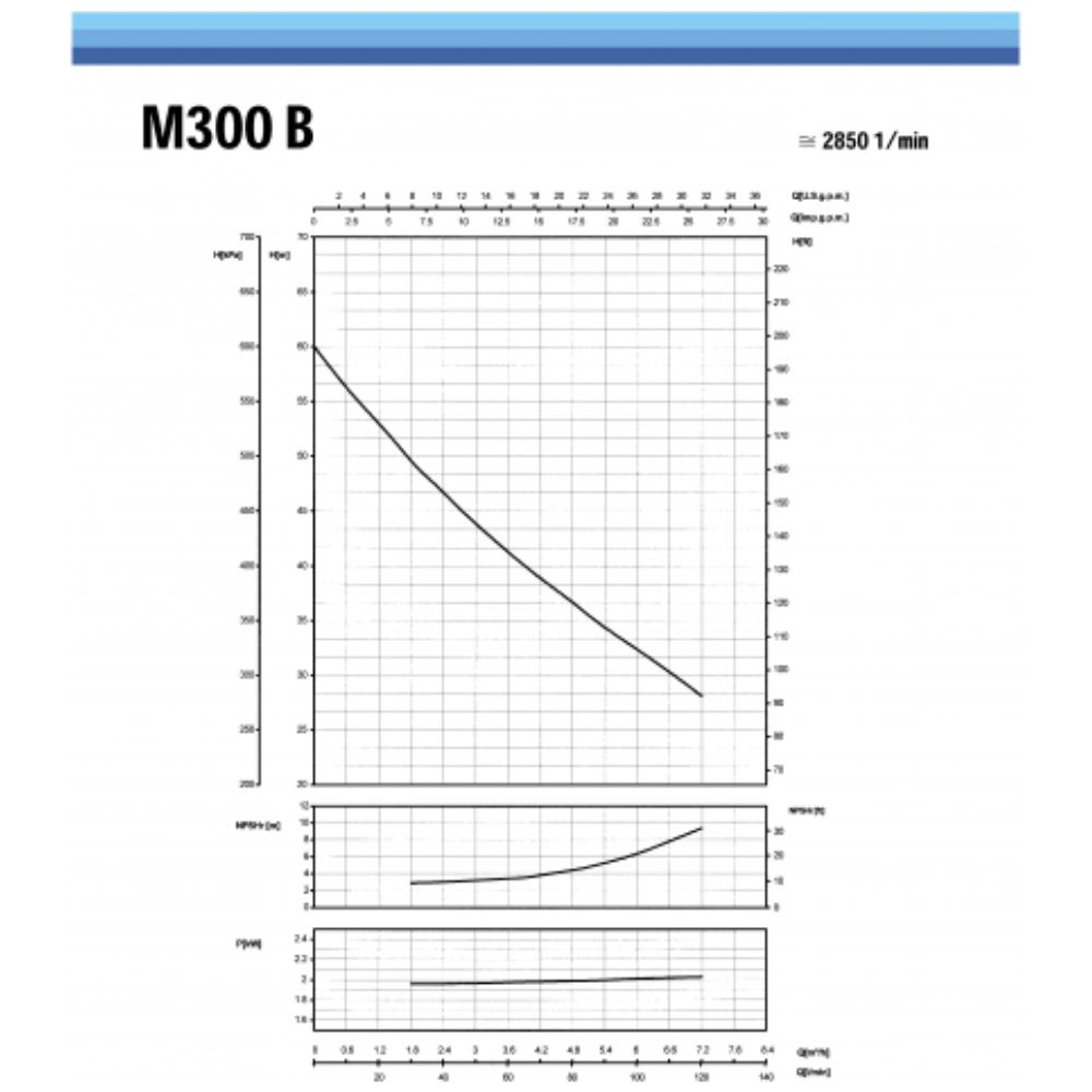 La pompa autoadescante monofase SAER M300-B ha attacchi da 1 1/2'' e 1 1/4'' , tensione 230 V e potenza 1,5 kW. La prevalenza massima è di 60 m e la portata raggiunge i 7,19 m³/h . È progettata per il trasferimento di acqua e per applicazioni di irrigazione con acqua pulita. È dotata di corpo in ghisa e albero in acciaio inossidabile. È adatta per l'approvvigionamento idrico generale, la nebulizzazione, l'aumento di pressione in impianti idraulici, applicazioni agricole e altro ancora.